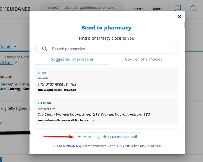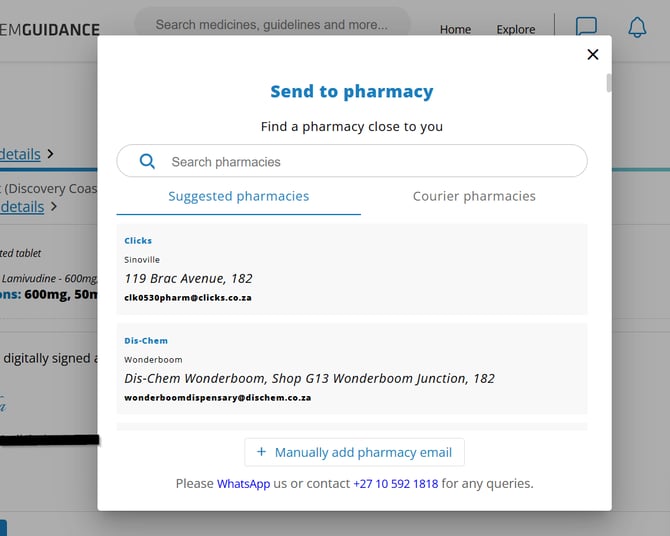 If you do not see your preferred pharmacy in the available list, you can manually enter the dispensary's email address into the appropriate field. The prescription will then be securely sent to the specified email address.