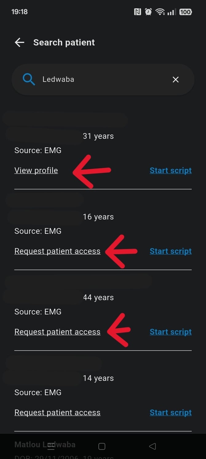 3. In the search results, either a “View profile” or a “Request patient history” option will appear next to the “Start script” button.-jpg.jpeg?width=670&height=1493&name=1000029616%20(1)-jpg.jpeg)