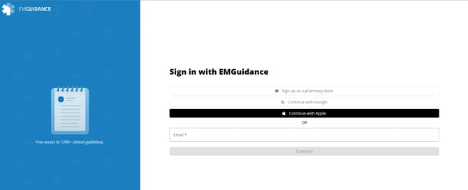 2. On the EMGuidance sign-in page, select your preferred sign-in method: either enter the email address associated with your EMGuidance profile, or sign in using your Google or Apple account.