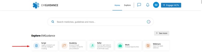 4. Prescribers will be redirected to the Script homepage. On the Script homepage, search for the patient’s profile by entering their last name or ID number/passport number.